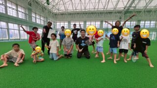 今月もやってきました!屋比久コーチによるJスポプログラム!! 今回は上半身、下半身と別々に時間をかけてメニューを行っていただきました! 腕の力が試される動き!中々に苦戦している児童がたくさんでした(´;ω;`) 意外にも難しい!?かかと歩き...